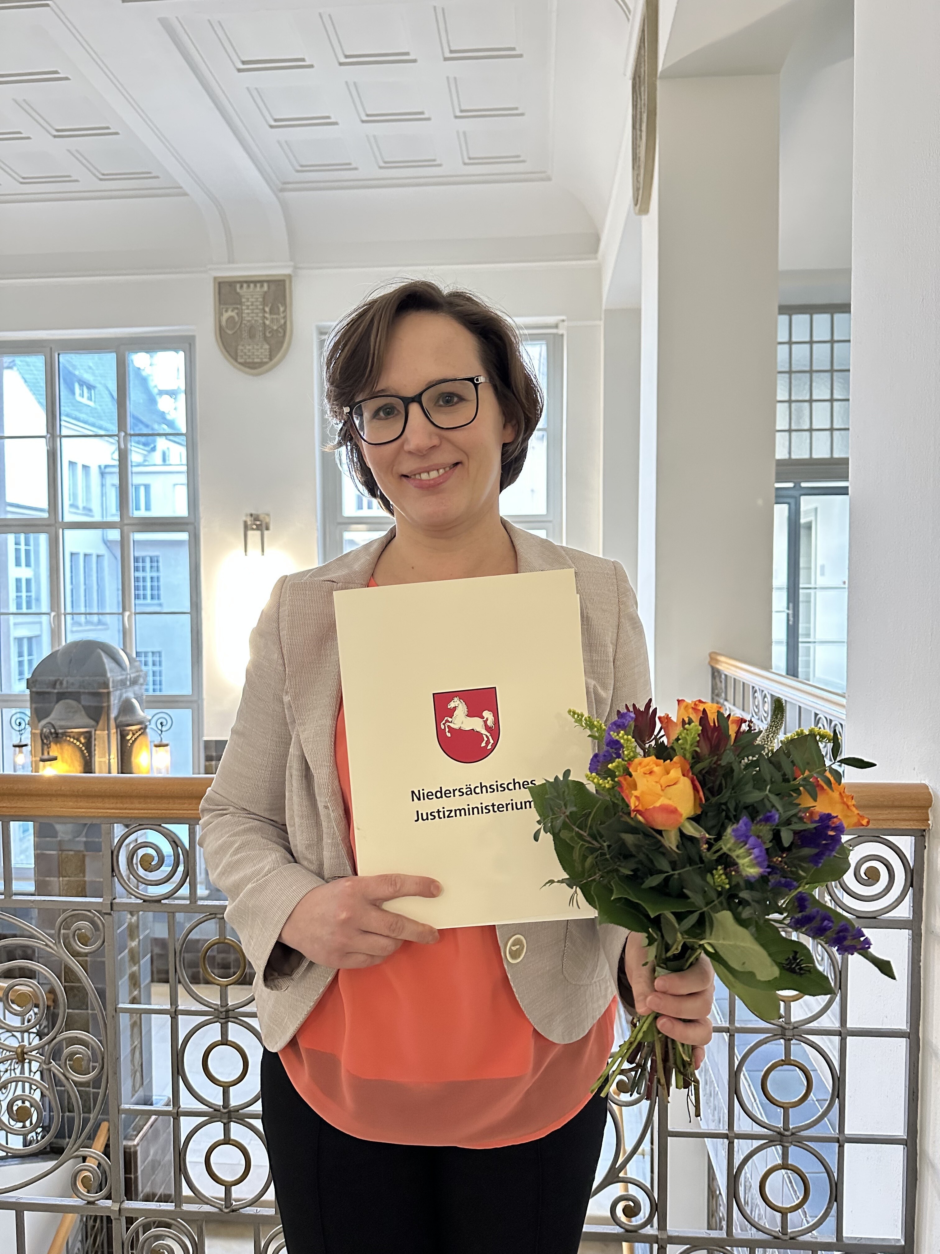 Am 20. Dezember 2024 erhielt Irina Heinrich die Ernennungsurkunde zur Richterin am Oberlandesgericht. Seit November dieses Jahres ist sie bereits an das Oberlandesgericht Braunschweig abgeordnet und Mitglied des 1. Familiensenats.