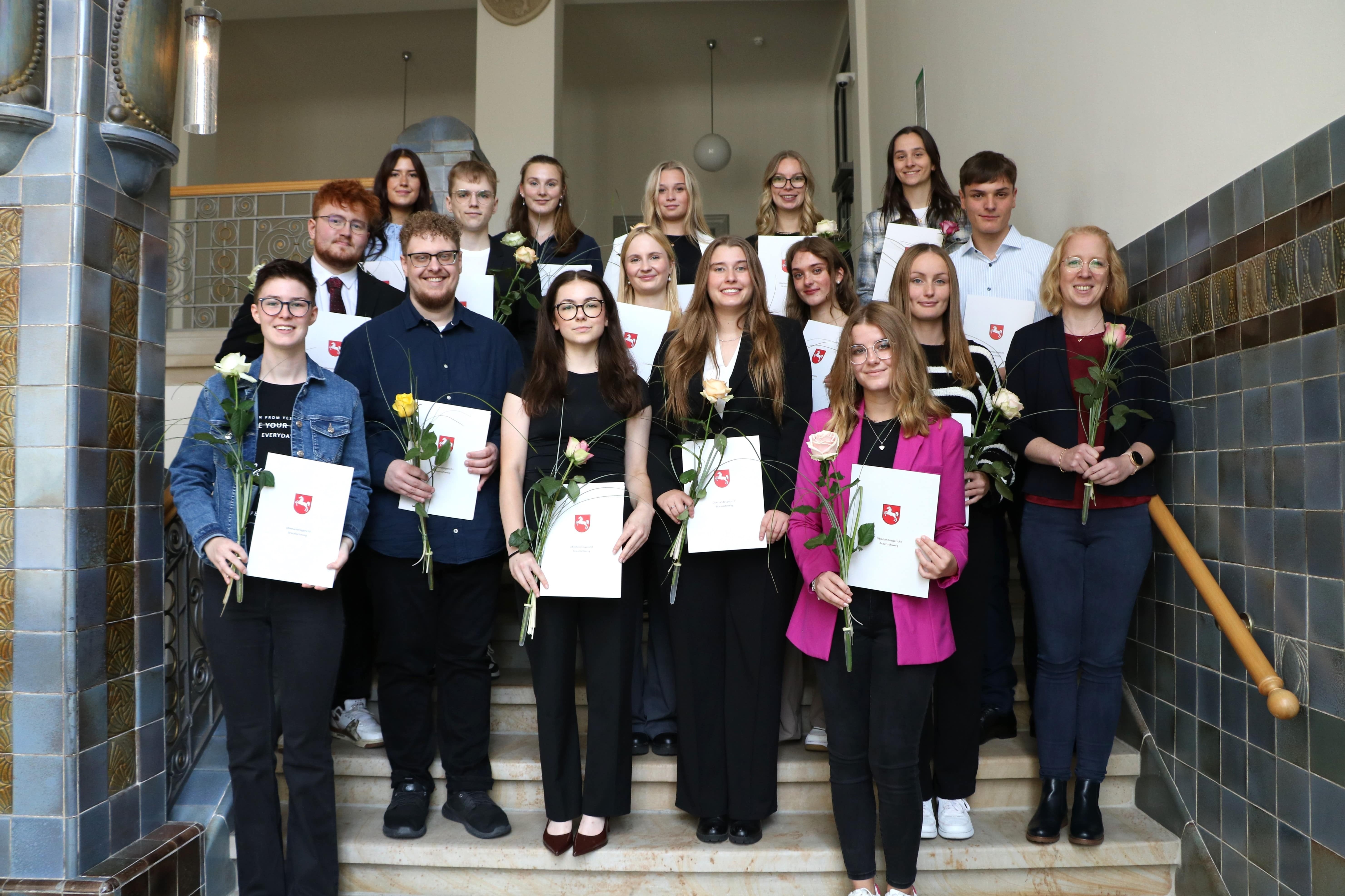 Heute hat der Leiter des Personalreferats Christian Grothe im Oberlandesgericht mit seinem Team siebzehn neue Anwärterinnen und Anwärter für den Rechtspflegerdienst willkommen geheißen und ihnen die Ernennungsurkunden zur Beamtin bzw. zum Beamten auf Widerruf ausgehändigt. Die Anwärterinnen und Anwärter – von denen eine bereits als Justizfachwirtin in der Justiz tätig war – haben sich erfolgreich unter mehr als 200 Bewerberinnen und Bewerbern durchgesetzt.
